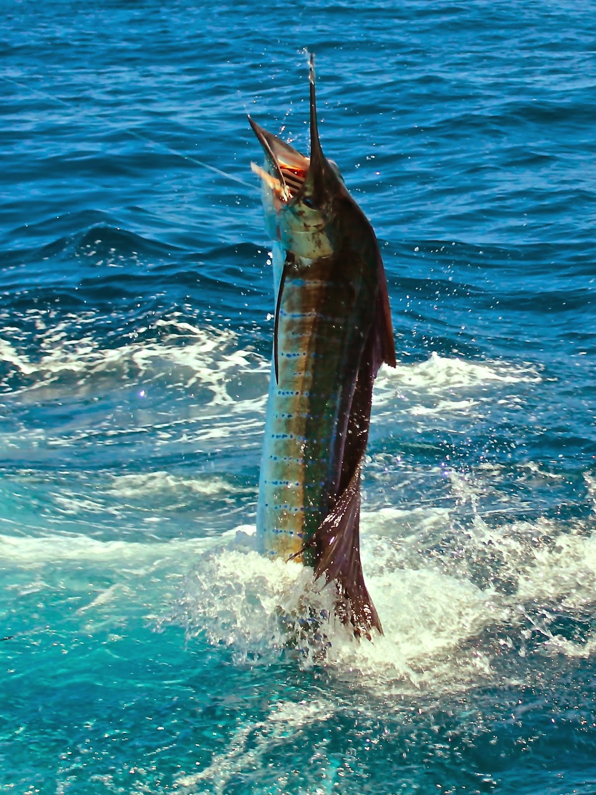 Taking just Allure II the following day we were greeted with calm seas and the fish were snapping, lots of doubles in the spread and some hot fish on the teasers. The guys made the most of the teaser bite learning the touch needed to pitch baits, let the fish eat, drop back, increase the drag and let the circle hook snag 'em in the jaw. A lot of fun out there with the crew today with 41 sailfish in the spread and 25 from 37 releases. There were some big females around.....