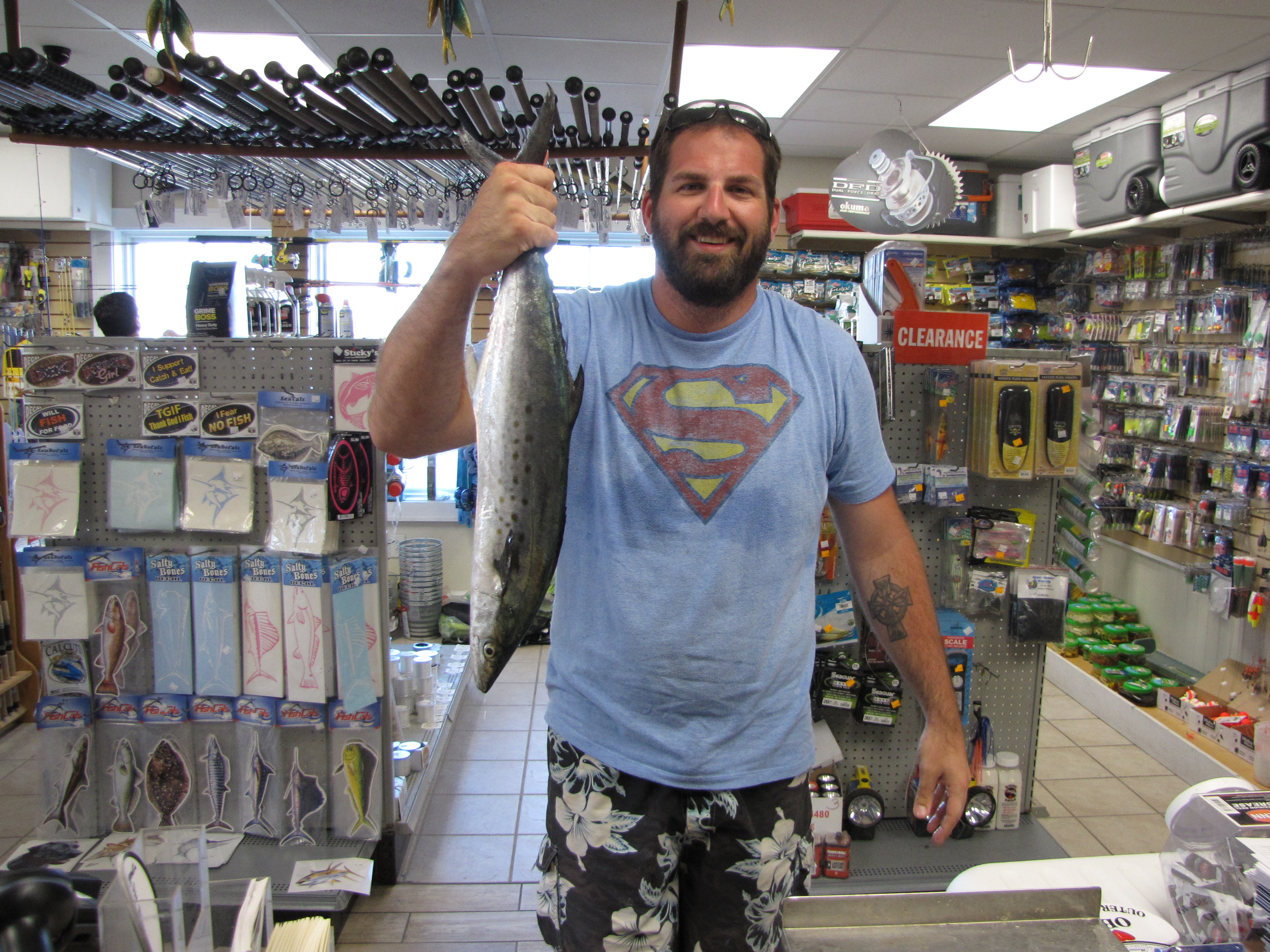 Blues, Spanish, False Albacore all on BROKE BACKS in Hatteras Village.. Pompano and Sea Mullets of the Smaller Variety. A few Flounder at the End. Check out Matt McCloskey's 4 Pound 9 ounce Spanish Mack Caught on our Broke Back Lures.. Just got the New Shipment in of our Broke Back Lures come and Get them!!!!!!! Available ONLY at Teach's Lair Marina..