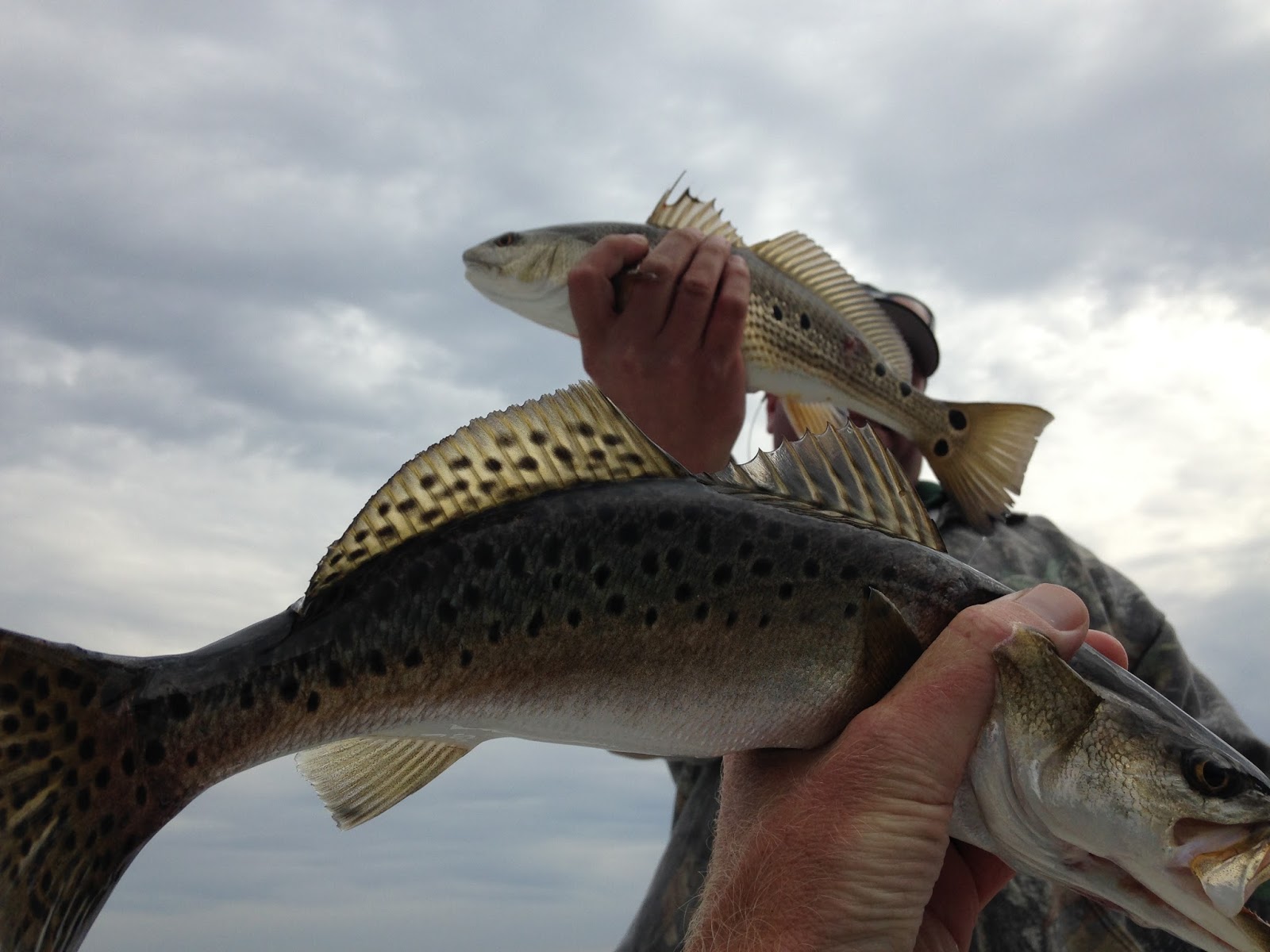 They're thick enough, I'm even catching 'em and I ain't no trout fisherman.   Good in the creeks, good in the ICW, good at the beach.    Albies are still going off and the kings are just offshore.    Weekends are pretty busy but most of the guides have scattered openings during the week.   Give us a ring and we'll try and get you out there.