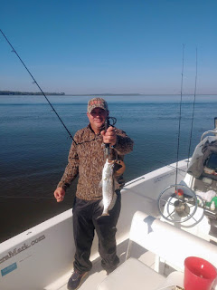 After running back to Seymore's Pointe we fished a large outflow, sticking with the floats, but had no luck. We then ran down to Spanish Drop and here the action picked up. Kevin and Doyle were on the stern and drifting floats and caught a good handful of Seatrout, a couple of which were of keeper size. Doyle added a small Flounder to round out his Amelia Island Back Country Slam of Redfish, Seatrout and Flounder. Then Jake had a hookup, played it perfectly, and landed a nice Trout.