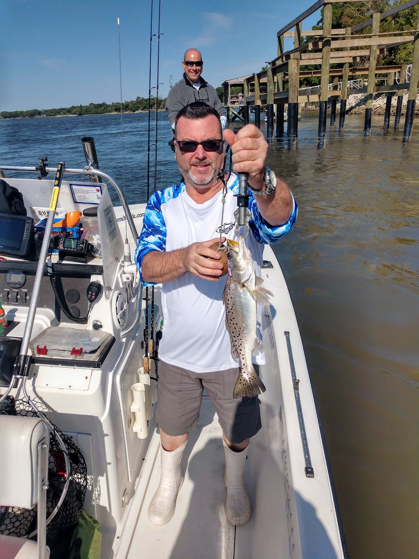 We crossed the creek, worked the bank, and picked up a couple of hungry Seatrout, then we ran thru Horsehead and fished an ambush pointe. Sean got on