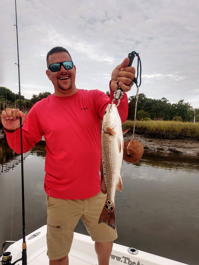 Our next stop was around at Bell River, fishing some dock pilings. We were flipping back and forth from live shrimp and mud minnows and here Chuck got hot and got some action. He hooked up and landed a feisty Black "puppy" Drum then he battled a nice Slot 20" Redfish to the net. The tide had hit bottom and was already coming back in back towards the ocean so we made along run.