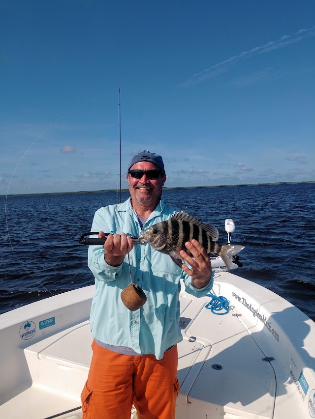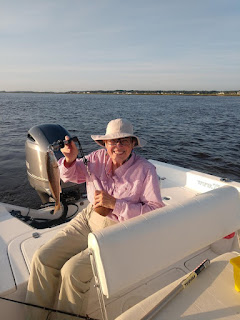 When the tide changed we moved up to the Nassauville area. A dock I was wanting to fish was occupied by a boat (that weekend fishing issue) but I hadn't fished Bubblegum Reef in quite a while, and being in a Tournament, I thought, "what the heck". I eased over to it, motoring idle speed and "Bump" we found it! After backing off we dropped lines and began to try and fish it - we couldn't see it, but we found it on occasion with a hung jig. But Betty was drifting a float up along the shell bed and picked up the first Flounder of the day. It wasn't big enough to keep but it gave us an Amelia Island Back Country Slam. Then Kenny had a "tap", set the hook, and Fish On! He played it patiently to the boat and landed a keeper sized Sheepshead. John and I had noticed that the 2019 Tournament results were still up on the board at the Captain's meeting and that year no one had checked in a Sheepshead, so we agreed that we might as well take this one in at check in.