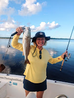 There were a couple of highlights - Suzanna battled a hard fighting Jack Crevalle to the net, Garland wore out a four foot Bonnethead, then they teamed up, almost at the same time, hooking up with some big Redfish. They even had to "do the dance", passing each other as they traded stern and port on the boat, but they both kept the pressure on. Suzanna put her fish in the boat, a Slot Redfish then shortly after Garland put another Slot in the boat. That was crazy!