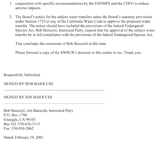 File a formal complaint to federal, state, or county agencies. Here is an example above, just one of thousands that the Baiocchi family has submitted in the state of California for all watersheds and it’s ecosystem including fish, wildlife, habitat, and the bugs.