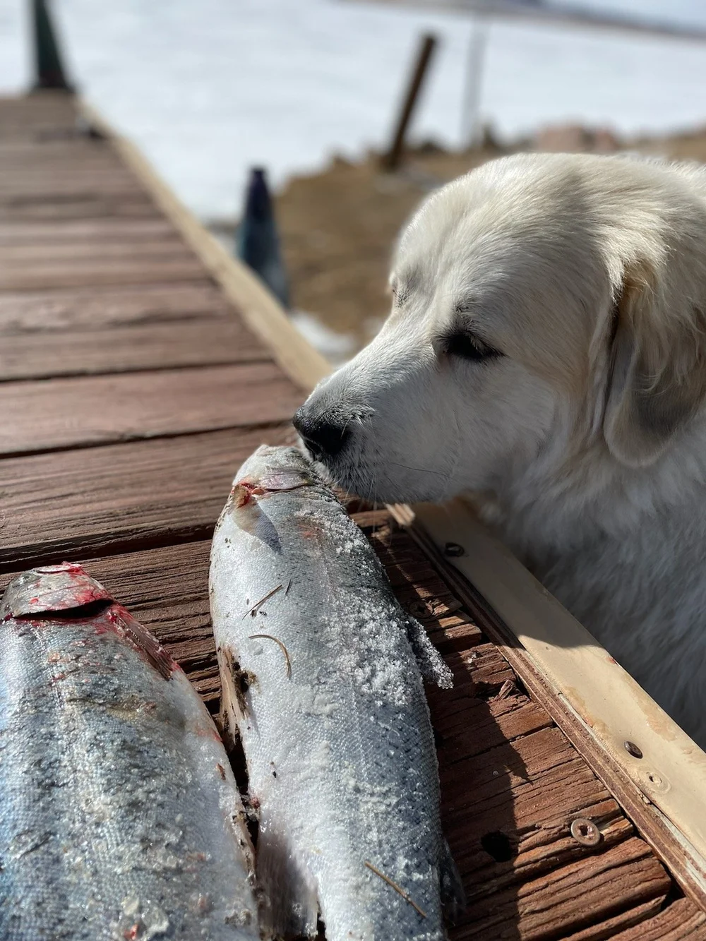 NORTHERN PIKE: FAIR: Few smaller ones showing up and we have seen some large fish that don’t seem to be interested just yet. They will come in on your offering and stare. Most people get antsy and jig or move their bait. Don’t. Just be patient and wait if they want it they will take it but any movement beyond a swimming waterdog can and often does spook them off.