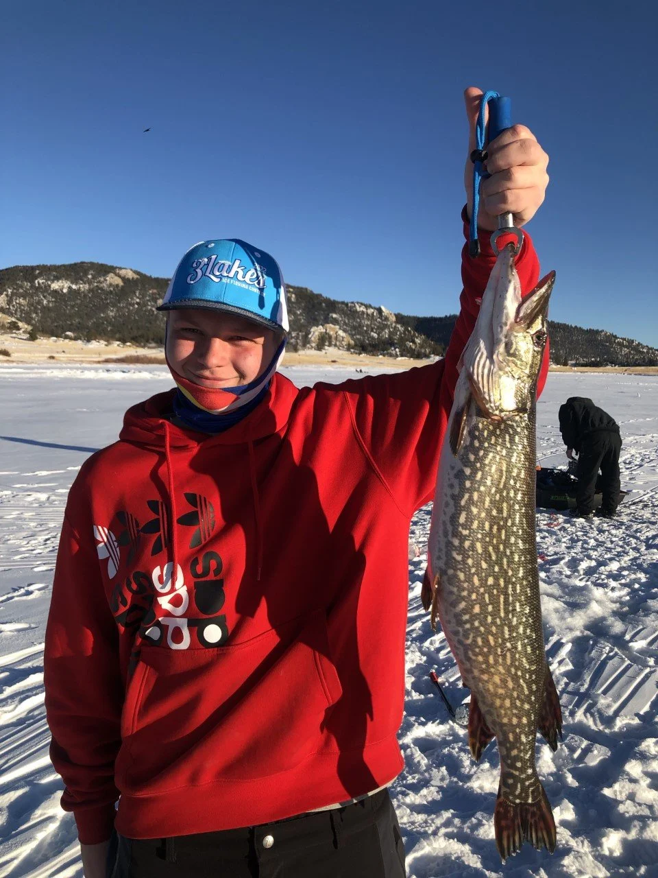 PIC # 4: Ethan Frederick catches this great Pike during the tournament. Unfortunately it was a Trout only event but what a great catch! Pic courtesy M.Frederick