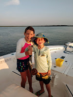 We followed the tide in and ran around to Broward Island, fishing deeper with the jigs, and picked up some rather large Mangrove Snapper then a couple of more small Red's. Then Ryan had a "bump", hooked it up, and worked to the boat. Sheepshead to notch the "Grande Slam". After moving down the island we fished a small bend and here, after a long wait, Christina got her Flounder - a Super Grand Slam!