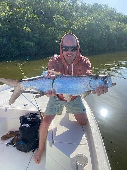 They caught Snook, Trout, Redfish Sharks, Ladyfish Jacks, and Snappers. It was fun day; on Tuesday we went into Whitewater Bay. We found some small Tarpon on the way out. We caught 2 for 4. Once the sun came out, they disappeared. They all caught their first Snook, Redfish and Trout. Mike caught his Tarpon and Snook on Fly.