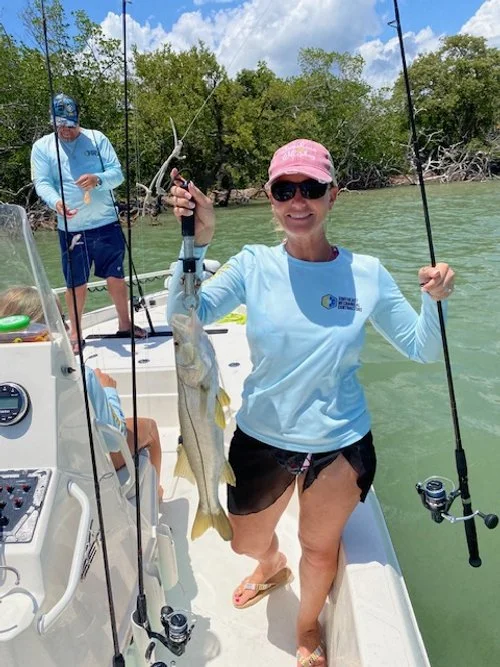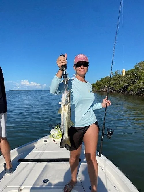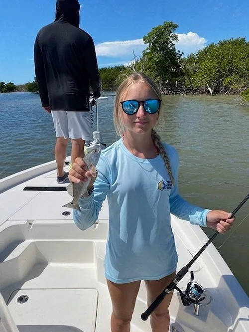 I had to catch the incoming tide for my Redfish spot. When we got there, we had to wait a bit. Tide came up and Kiley had the hot hand. She had a Snook, a 5lb Redfish and then a 1lb Redfish. We had a few more Snook and then Jason caught a nice 28-inch Snook. It slowed down and the ladies were hot. We decided to head back with one more stop. The last stop was the bite were looking for all day. I had about 10 Horse Pilchards left. The first was eaten by a big Lemon Shark, then Jason caught a 29-inch Snook. We missed a couple until Sara got a good one on our last bait. It was a 28-inch Snook and after that every ne was ready to cool down on the ride back. This was a very enjoyable day. Everyone held their own with pretty good casting skills. When it was all over Kiley won Most Redfish in the Jr. division.