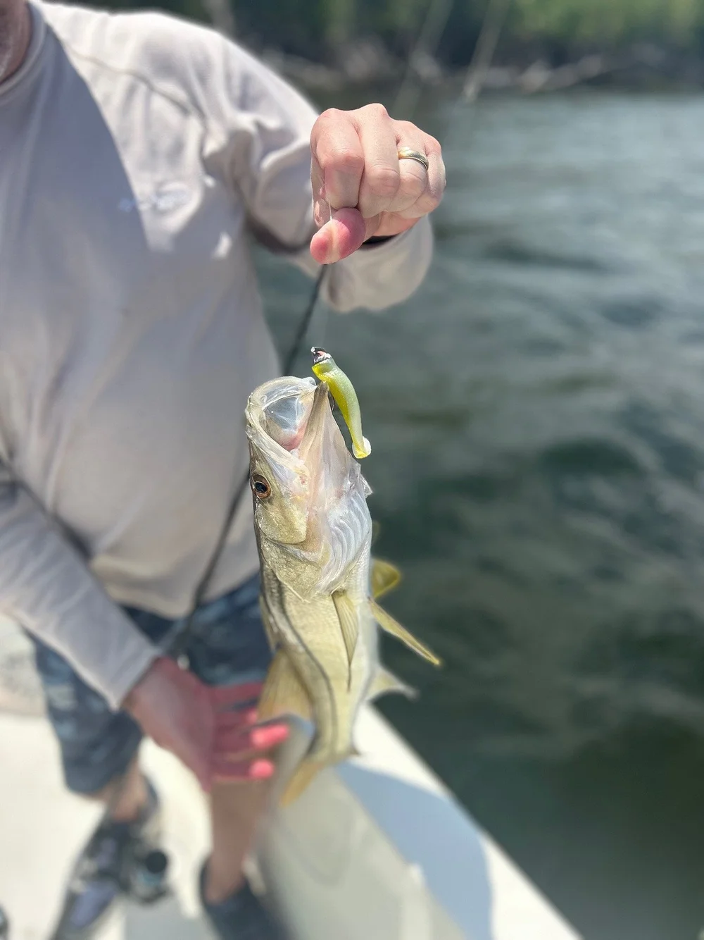 We started in the backcountry and got on some small Tarpon and Snook on the NLBN 3’ paddle tails at first light. We were only throwing NLBN products today and killed it. I had not been to the Tarpon Bay area in a long time and had guys that didn’t mind the long ride, It was hard getting there because we caught fish everywhere we stopped in big numbers. The Snook, Trout and Goliaths are really on fire back there.